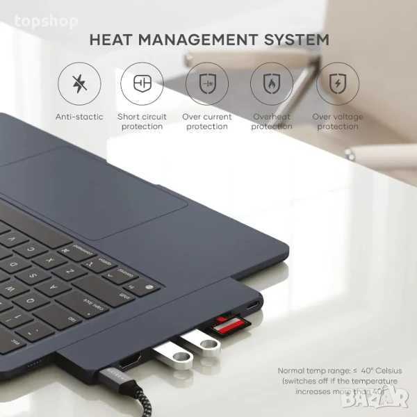 Разширете възможностите на вашия MacBook - Отключете подобрена функционалност с отзивчиви портове за ефективно преминаване. Включващ USB 4 порт, поддържащ 6K @ 60Hz резолюция, 40Gbps трансфер на данни и 100W захранване, HDMI порт за 4K @ 60Hz видео в разширен и огледален режим и слотове за Micro/SD карти (UHS-I скорости), поддържащи до 2TB капацитет. Повишете производителността си с това универсално докинг решение.