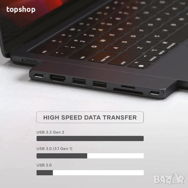 Авангардна свързаност - разполага с два USB 3.2 Gen 2 порта за скорости на трансфер от 10 Gbps, обратно съвместими с USB 3.0/2.0/1.1. Високоскоростният USB C порт за данни предлага 10Gbps трансфери, а двойните USB C конектори осигуряват съвместимост с MacBook Pro 2017+ и Air 2018+. Подобрете вашата настройка с това усъвършенствано решение за свързване.