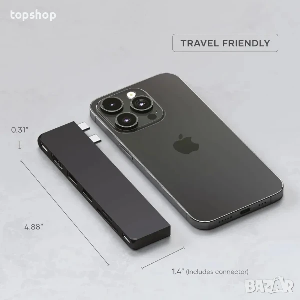 Повишено изживяване - Насладете се на качествена изработка, елегантна естетика и преносимост. Тази докинг станция се интегрира безпроблемно с вашето устройство. Предлага леко и удобно за пътуване решение. Забележка: Не е съвместим със защитни капаци без USB C отвор.