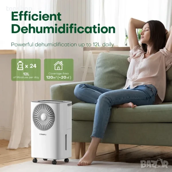 влагоуловител CONOPU 12L/Ден, 24h таймер за включване/изключване, автоматично изсушаване, изсушител за сушене на дрехи, подходящ за апартамент/мазе/сушилня