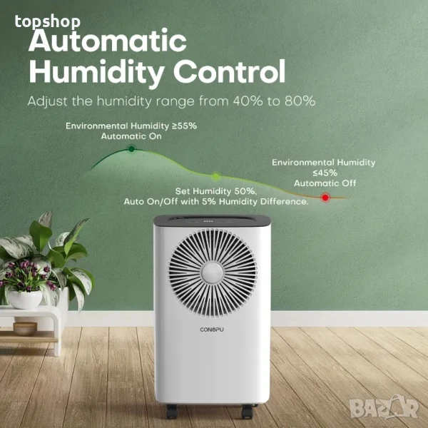 Енергийно ефективен и персонализиран: Този влагоуловител има функция за 24-часов таймер, която позволява на CONOPU да регулира времето за включване/изключване на машината според вашите нужди. Независимо дали се прибирате от работа или се подготвяте за добър нощен сън, той активно създава суха и комфортна среда. С консумация на енергия от само 0,21 kW/час той е лесен за използване, като същевременно помага за подобряване на ефективността и пестене на енергия.