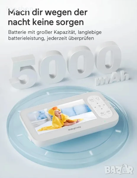 НОВ Babycozy Video Бебефон с камера и аудио 5" 720P дисплей 5000mAh