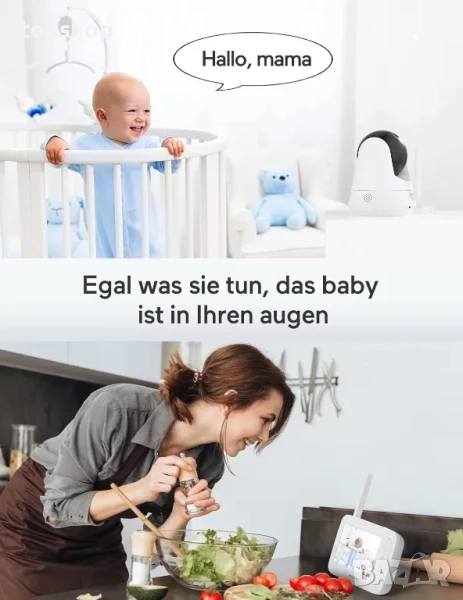 Без усложнения с телефонните приложения, просто включвате камерата и включвате монитора си и те се свързват незабавно. Не е нужно да тичате в стаята всеки път, когато детето издаде шум, винаги виждайте детето си в креватчето или там, където не сте, виждайте какво се случва бързо и непрекъснато, бебефонът не ви кара да се чувствате стресирани. Ако искате да добавите допълнителни камери, той също има функция за разделен екран, така че можете да видите всички места, върху които искате да фокусирате едновременно.
