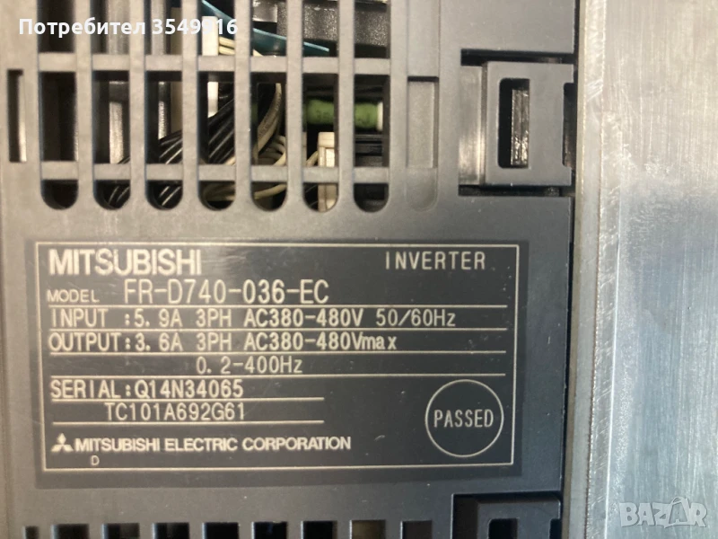 Честорен регулатор 1,5KW Модел FR-Е740-036-EC Вход 3PH 380/480V 50/60Hz 5.9A Изход 3PH 380-480V 0-400Hz 3.6А Mного добър външен вид и перфектно работно състояние.