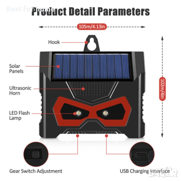 Ултразвуков, соларен, звуков репелент за контрол на вредители