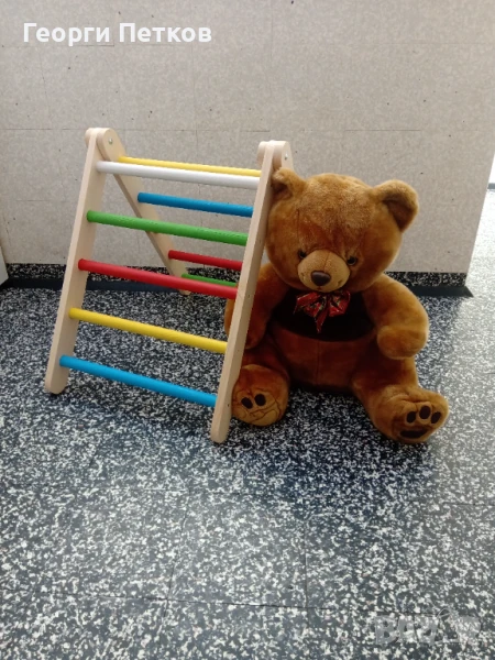 Изработен от естествена дървесина, обработен и оцветен с безопасни бои на водна основа.