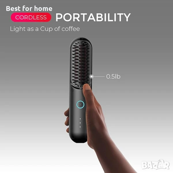 1 ЗАРЕЖДАНЕ ЗА 2-3 УПОТРЕБИ: Четката за изправяне на коса TYMO PORTA е снабдена с акумулаторна батерия с висок капацитет 3200mAh, изработена от най-съвременни материали, за да предотврати стареенето на батерията. Може да се зарежда удобно с помощта на включения кабел за зареждане, който поддържа и зареждане в кола. Само с едно зареждане можете да я използвате до 30 минути, което е достатъчно за 2-3 пъти.