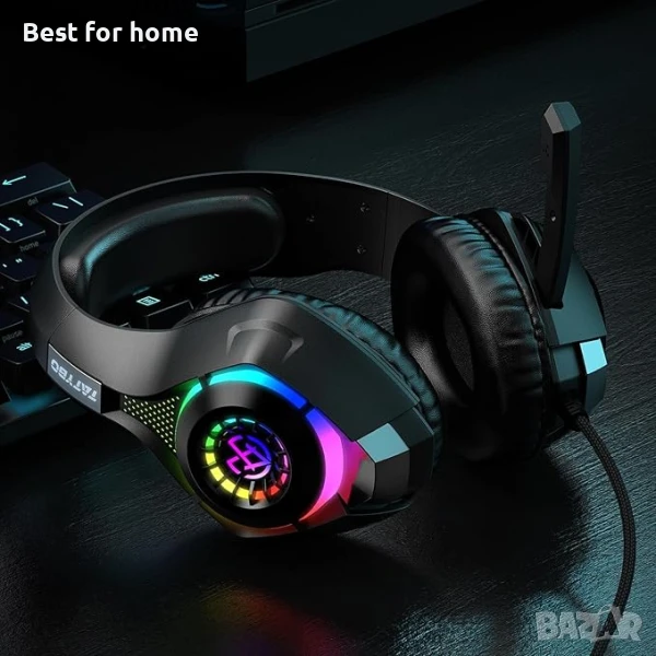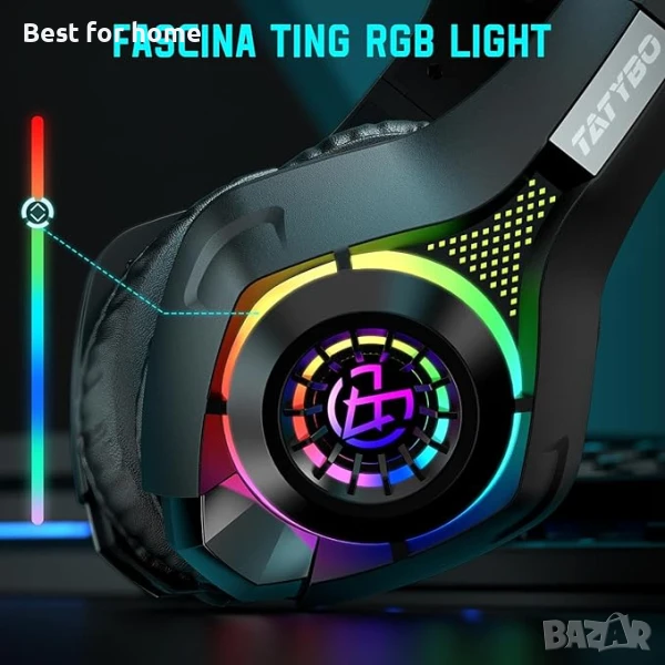 Геймърски слушалки Tatybo за PS4 PS5 Xbox One PC, слушалки за игри с обхватен звук, микрофон с шумопотискане, RGB светлина
