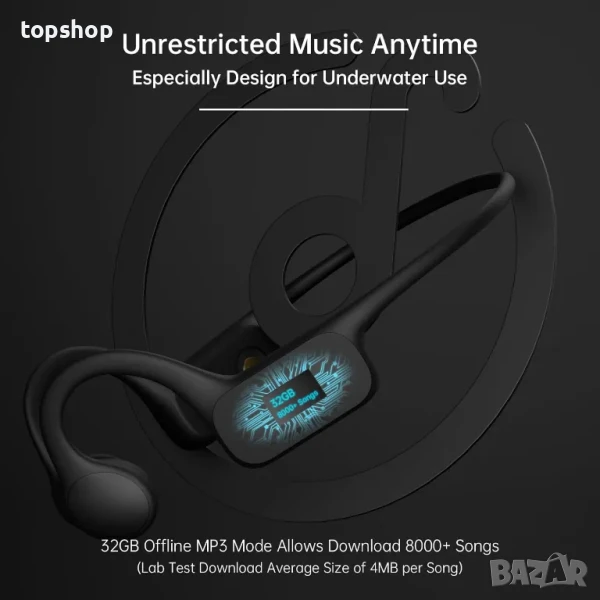 ЗАПЕЧАТАНИ НОВИ Водоустойчиви слушалки Tayogo, за плуване с костна проводимост, IPX68, 32GB памет