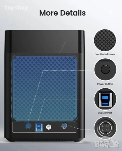 Нова, тествана докинг станция ORICO 5 Bay с 5 слота до 90tb, 90TB (5x18)