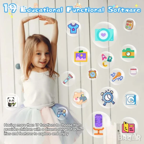【Детски фототелефон】Двойна предна и задна камера, забавни стикери за персонализиране, висококачествен звук, карта, 10 увлекателни приказки и голямо хранилище за музика и учебни аудиозаписи. Насърчава креативността, фотографските умения, въображението и предоставя приятно аудио съдържание за развлекателни и учебни цели.