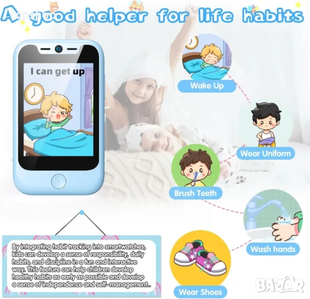 【Телефон за учене на деца】 Алармен часовник с навици, аларми с време и пъзел игри, които помагат за регулиране на графиците за работа и почивка на децата и подобряване на когнитивните умения. Насърчава здравословни навици, управление на времето и когнитивно развитие при децата, като насърчава цялостното благосъстояние и подобряване на уменията .
