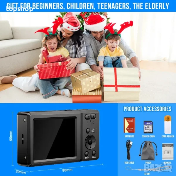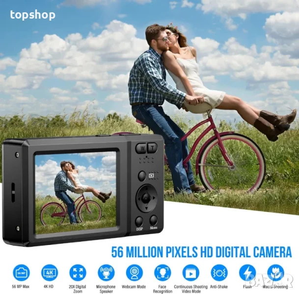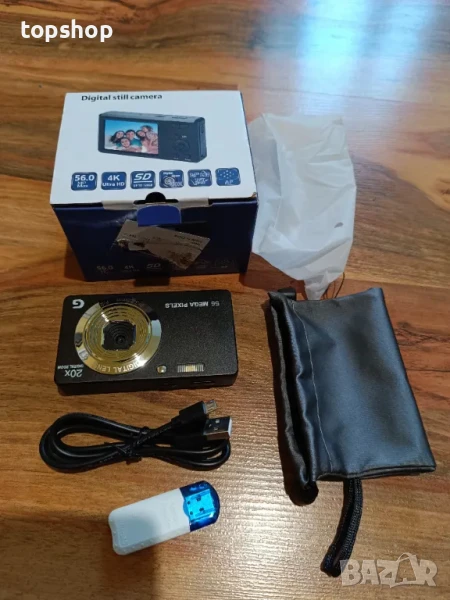 Цифров фотоапарат 56MP 4K HD Компактен с 32GB карта, 20X увеличение 2,7-инчов екран, Литива батерия