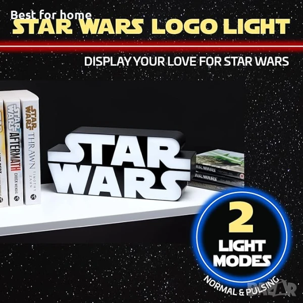 Светлина с логото на Междузвездни войни, за стенен монтаж и свободно стояща
