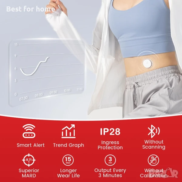 【Висока производителност】Новият шедьовър на Sinocare, Sinocare iCan i3 CGM, използва технология за откриване на глюкоза от трето поколение, което означава по-голяма устойчивост на смущения и следователно могат да се получат по-стабилни резултати от измерването. Стойността на MARD е 8,71%, което позволява да се получат по-надеждни резултати.