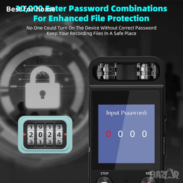 【10000 комбинации от пароли】Освен това, той е оборудван с по-голям 1,4-инчов екран, което го прави много лесен за употреба от възрастни хора, позволявайки ясна видимост на всяка функция. След това включете функцията за парола на рекордера, 4-цифрената цифрова парола с 10000 комбинации от пароли за подобрена защита на файловете може да защити вашата поверителност. Той също така се предлага със защита с парола за вашите файлове, предотвратявайки неоторизиран достъп или слушане на записано съдържание.