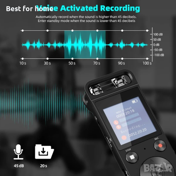 【Многофункционален , Отлично съотношение цена-качество , преносим】Джобният диктофон работи с всички функции, които искате, AB повторение / Циклично възпроизвеждане .Стандартен 3,5 мм жак за слушалки .Като MP3 плейър .Вграден високоговорител .Поддръжка на 28 езика .Запис с таймер .MP 3 / WMA/PLAC/APE формати Възпроизвеждане с променлива скорост .AVR режим .Защита с парола .Автоматичен запис с таймер .DSP чип за намаляване на шума .За прехвърляне на файлове.