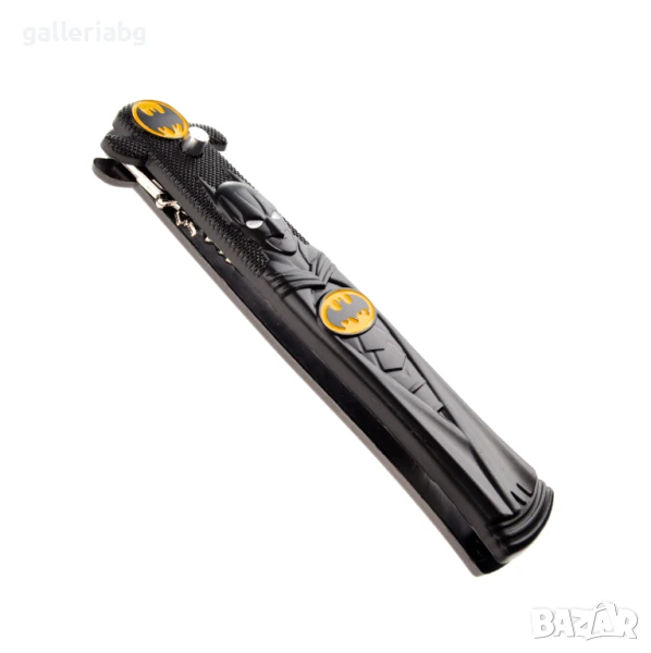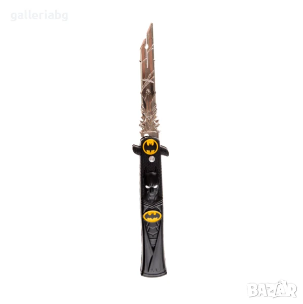 Джобен сгъваем тренировъчен нож - тип пеперуда в сребрист цвят. Дръжките са декорирани с прилеп.