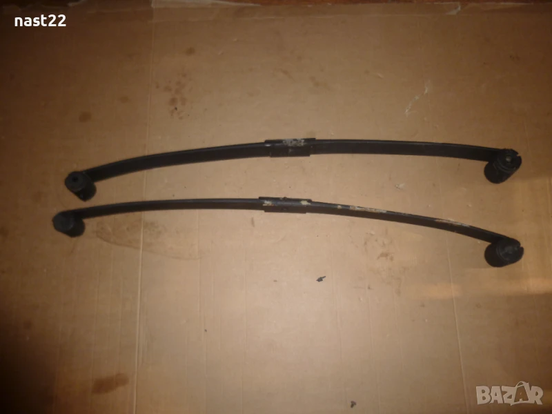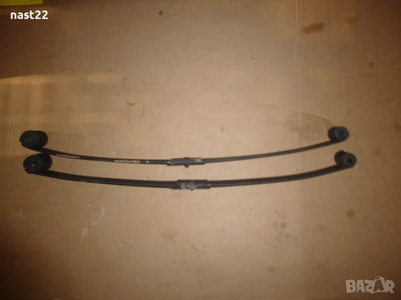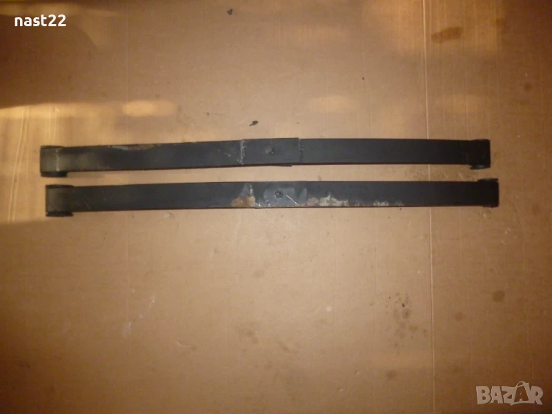 Това са ресори свалени от Сузуки Самурай-Сантана-те са 1 лист,който е усилен в средата.Самите ресори са така заводски.Цената е за двата ресора