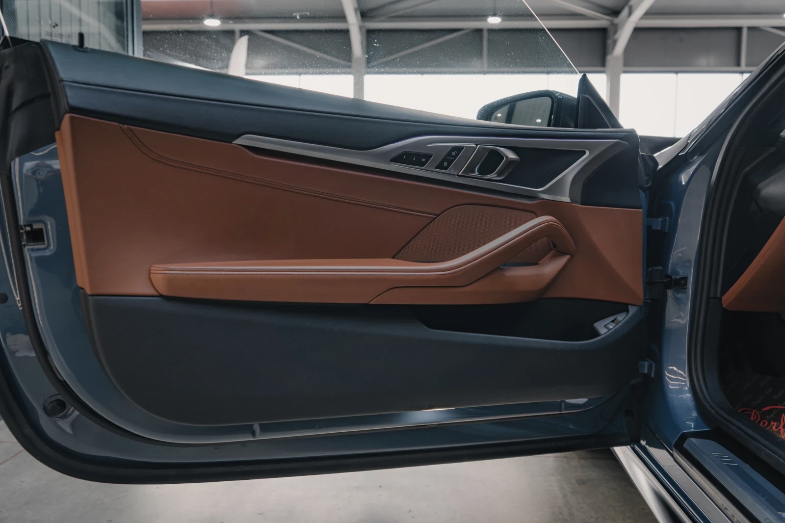BMW 840d xDrive M Sport Пълно описание на екстрите Двигател и задвижване Двигател: 3. 0L TwinPower Turbo, редови 6-цилиндров дизел Мощност: 435 к. с. / 800 Нм въртящ момент - след модификация Ускорение: 0-100 км/ч за около 4 секунди Задвижване: xDrive интелигентна система за задвижване на всички колела Скоростна кутия: 8-степенна автоматична Steptronic с пера на волана Асистиращи и сигурностни системи Адаптивен круиз контрол (ACC) поддържа дистанция до предния автомобил Асистент за следене на лентата (Lane Keep Assist) коригира волана при напускане на лента Асистент за мъртва точка (Blind Spot Assist) Система за разпознаване на пътни знаци (Traffic Sign Recognition) Система за нощно виждане (Night Vision) с разпознаване на пешеходци и животни Автоматично аварийно спиране (Collision Prevention Assist) Асистент при спускане и потегляне по наклон (Hill Start Assist) Система за предупреждение при умора на водача (Driver Attention Assist) 6 въздушни възглавници, ABS, ESP, DTC Паркиране и видимост Паркинг асистент Plus с автоматично паркиране Камера за заден ход с водачи Предни и задни парктроници (PDC) Автоматично прибиране на огледалата Огледала с автоматично затъмняване Head-Up дисплей (HUD) показва важна информация върху челното стъкло Осветление Адаптивни LED фарове с функция за завиване Автоматични дълги светлини (High Beam Assist) LED дневни и стоп светлини Амбиентно интериорно осветление с възможност за избор на цвят 💺 Комфорт и интериор Мултиконтурни спортни кожени седалки с памет Подгряванена предните седалки Електрическо регулиране на предните седалки Четиризонов автоматичен климатроник Електрическо регулиране на волана с памет Безключов достъп и палене (Keyless Go) Мултимедия и технологии BMW iDrive 7. 0 с голям сензорен екран Навигация Professional Apple CarPlay и Android Auto Bluetooth + USB + AUX + DAB+ радио Жестово управление (Gesture Control) Безжично зарядно за смартфон Wi-Fi точка за достъп Допълнително M Sport пакет включва M аеродинамичен бодикит, M волан, интериорни елементи и спортни настройки на окачването Адаптивно спортно окачване Декоративни лайстни с алуминиев финиш Интериор от висококачествена кожа Merino
