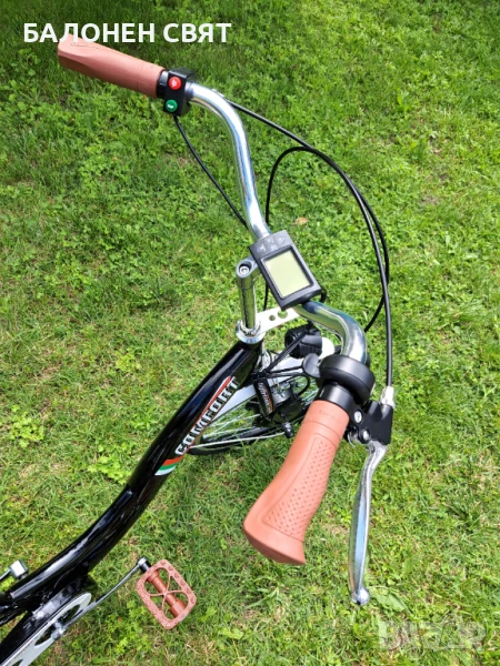 Дисплей, монтиран на кормилото за управление на електрическата система, показващ зареденост на батерията, превключване на трите режима за движение.