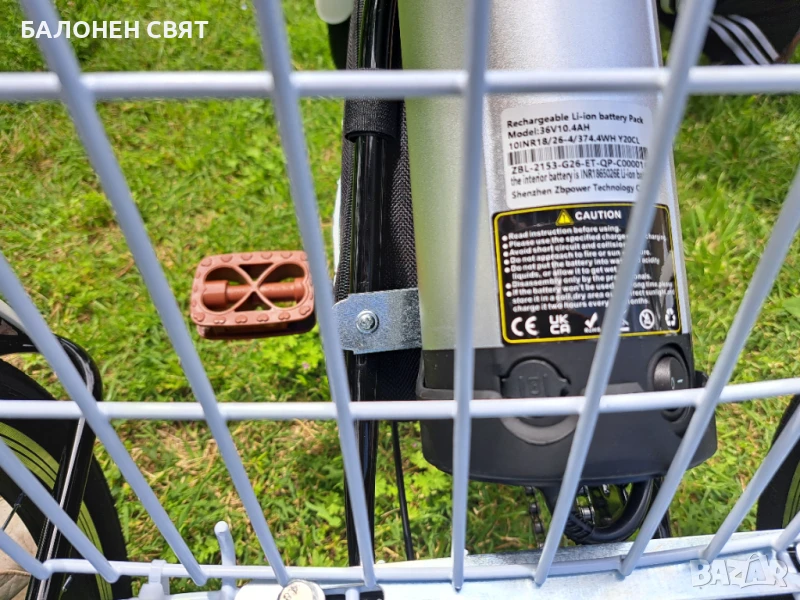 Заключваща се, сваляема Li-Ion литиево-йонна акумулаторна батерия със собствен предпазител (бушон) и светещ индикатор за зареденост: клас А, 36V 10.5Ah в комплект със зарядно устройство.