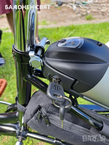 Механично отключване и заключване на батерията към корпуса на триколката с 2 бр ключове.