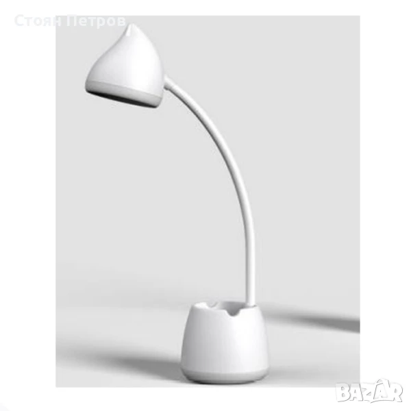 технология). Основата на лампата е оформена като чаша и може да се ползва като моливник или за бележки, или като стойка за смартфон.