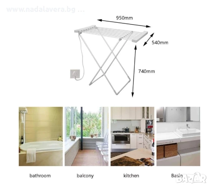 простор – сушилник с 8 броя алуминиеви нагряващи тръби. Товароносимост до 10кг.