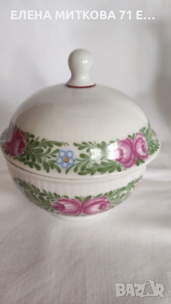 Захарница с високо капаче-диам.10.5 см , височина до върха на капачето 11 см