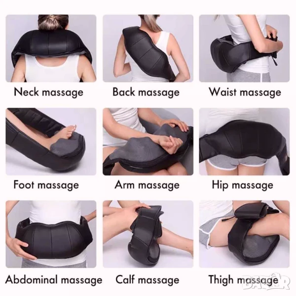 Насладете се на истински Шиацу масаж у дома, в офиса или в автомобила. Иновативен уред за масаж за различни зони от тялото.