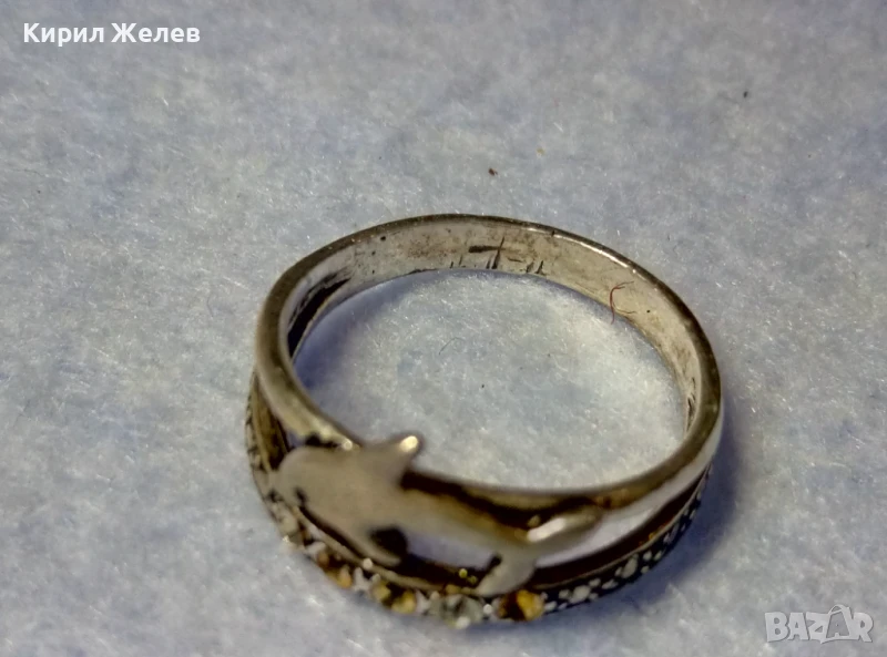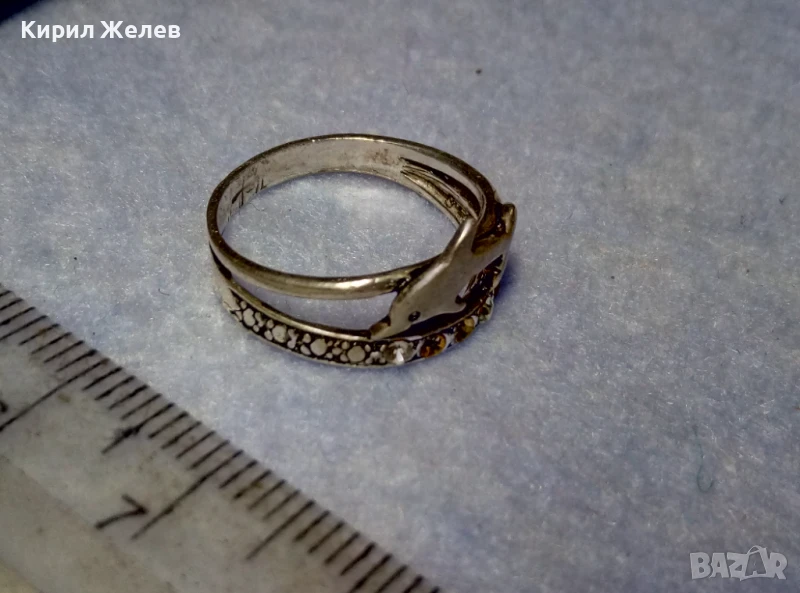 СТАР АЖУРЕН СРЕБЪРЕН ПРЪСТЕН с ДЕЛФИН СРЕБРО ВИСОКА ПРОБА с ЦИРКОНЧЕТА 50189