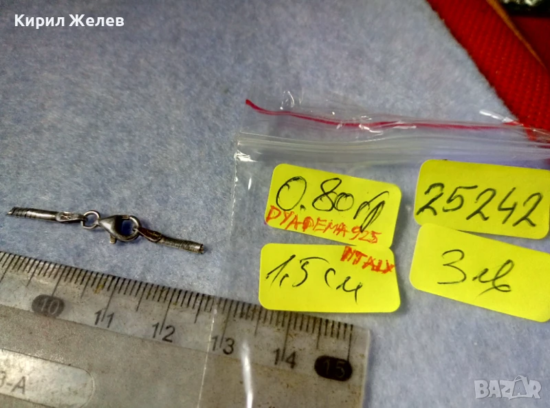 Пускам голяма СЕРИЯ от майсторска ръчна изработка старинни и нови СРЕБЪРНИ БИЖУТА - пръстени, обеци, медальони, гривни, ланци, колиета, брошки - някои са инкрустирани със скъпоценни или полускъпоценни камъни. Всичките са ТЕСТВАНИ ПРОФЕСИОНАЛНО върху лидийски камък с пробер - киселина за сребро, като особено по-старите, ръчно изработени и без маркировка които са, е заснето и резултата на камъка - яркочервеният цвят при натъркване и капване на киселината показва, че са от масивно СРЕБРО ВИСОКА ПРОБА. Има и накити от САЧАН /нископробна сребърна сплав, с която са работели старите майстори - куюмджии от периода на ВЪЗРАЖДАНЕТО и края на 19-ти век/, мед, бронз и благородна стомана с позлата или посребряване. Снимките ги ОНАГЛЕДЯВАТ! Имам НАД 27000 обяви в профила си - За ВСЕКИ по НЕЩО...! Изпращам по Еконт или Спиди с опция Преглед/Тест и отстъпка-транспорт.