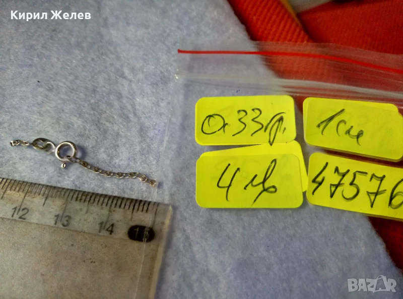 Пускам голяма СЕРИЯ от майсторска ръчна изработка старинни и нови СРЕБЪРНИ БИЖУТА - пръстени, обеци, медальони, гривни, ланци, колиета, брошки - някои са инкрустирани със скъпоценни или полускъпоценни камъни. Всичките са ТЕСТВАНИ ПРОФЕСИОНАЛНО върху лидийски камък с пробер - киселина за сребро, като особено по-старите, ръчно изработени и без маркировка които са, е заснето и резултата на камъка - яркочервеният цвят при натъркване и капване на киселината показва, че са от масивно СРЕБРО ВИСОКА ПРОБА. Има и накити от САЧАН /нископробна сребърна сплав, с която са работели старите майстори - куюмджии от периода на ВЪЗРАЖДАНЕТО и края на 19-ти век/, мед, бронз и благородна стомана с позлата или посребряване. Снимките ги ОНАГЛЕДЯВАТ! Имам НАД 27000 обяви в профила си - За ВСЕКИ по НЕЩО...! Изпращам по Еконт или Спиди с опция Преглед/Тест и отстъпка-транспорт.