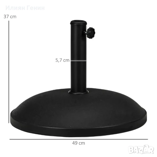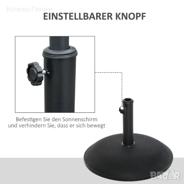 Стойка за чадър Outsunny, основа за чадър, 3 адаптера, регулируема, цимент, 25 кг, черна - 80.00лв.