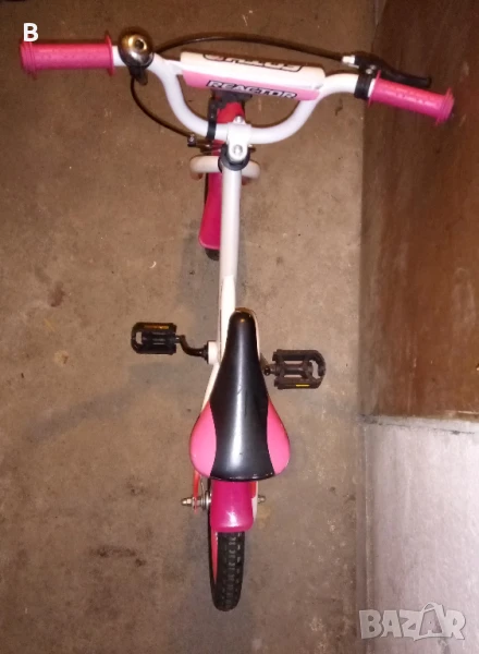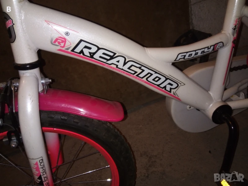 В добро състояние. Забелележка: следи от изстриване на боята в задната част на седалката. REACTOR Foxy Girl с помощни колела. Подходящо за 5-8 години, 16 цола. Звънец, предна спирачка, задна контра.
