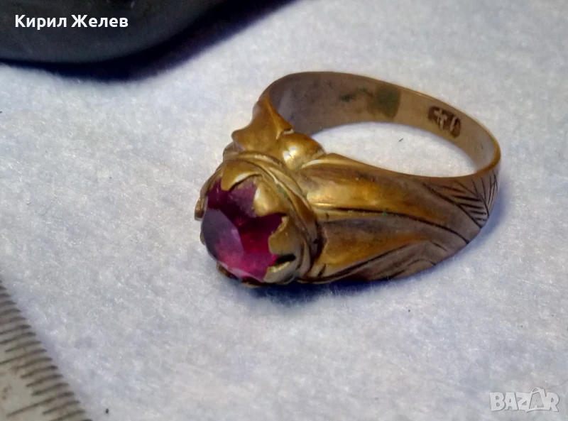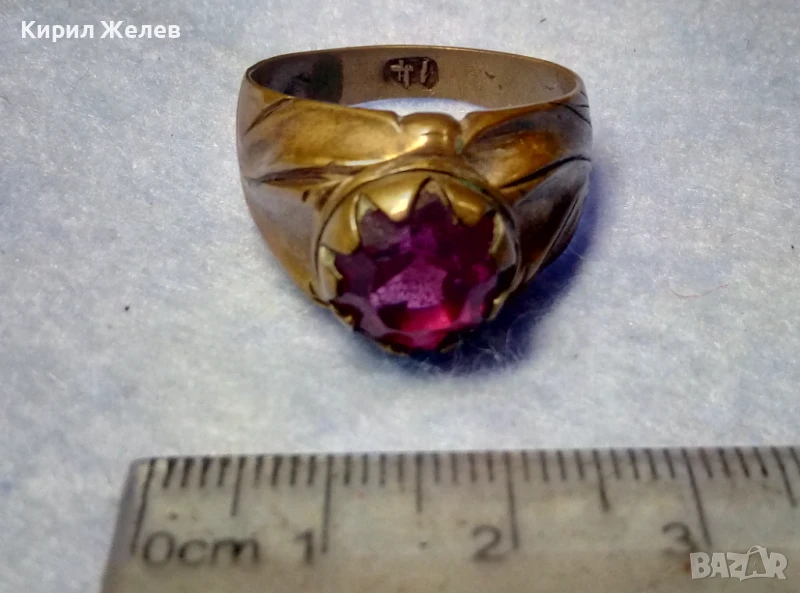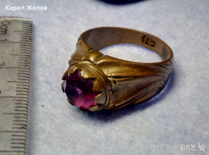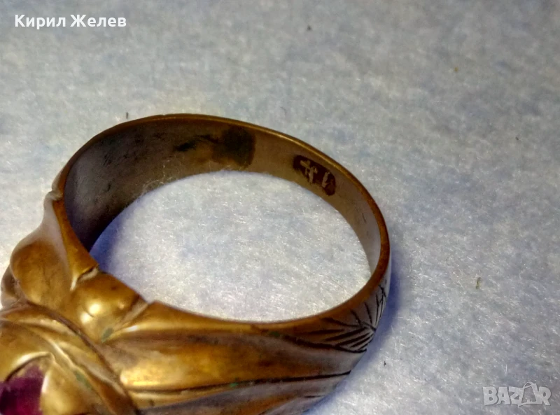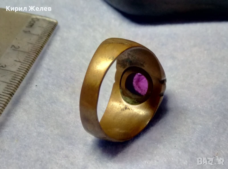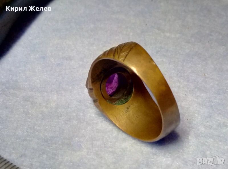 СТАРИНЕН СКЪПОЦЕНЕН МЕДЕН ПРЪСТЕН с ЮВЕЛИРНО ФАСЕТИРАН АМЕТИСТ и ПЕЧАТ 14 РЪЧНА ИЗРАБОТКА 50091