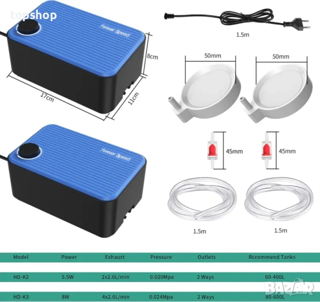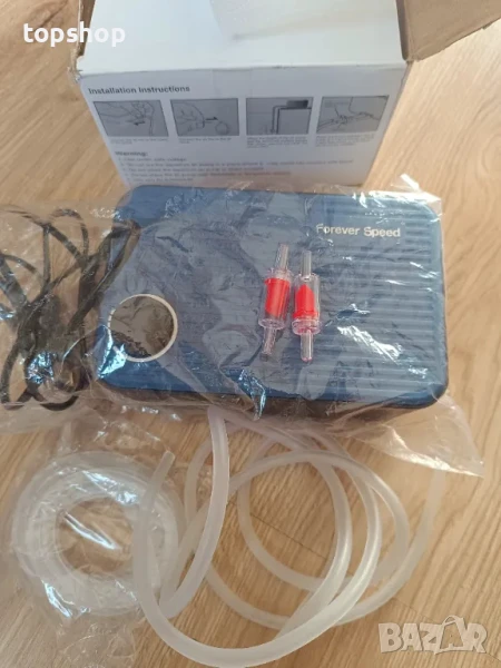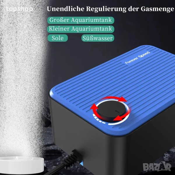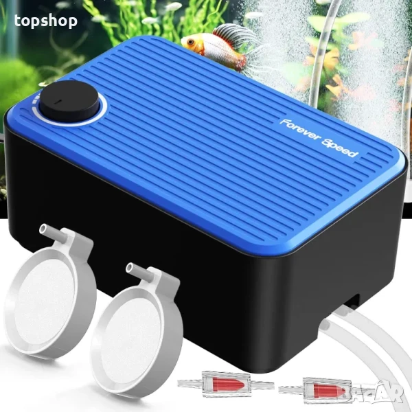 НОВА Безшумна въздушна помпа за аквариум Forever Speed, 8W, 480 L/H. Регулируема въздушна помпа за аквариум, кислородна помпа, много тиха с двойни отвори за въздух, ниска вибрация и повече кислород, от 80 до 600 литра
