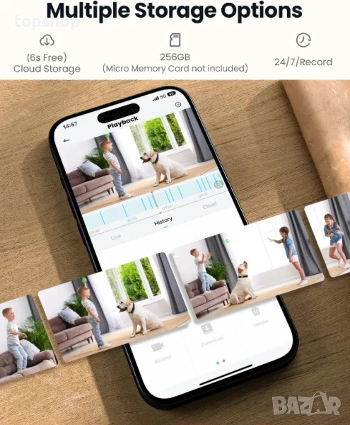 【Colud/локално съхранение и 24/7 запис】 Видеозаписът, записан 24/7 от тази бебешка камера, може да бъде записан на карта с памет (до 256 GB, не е включена) или в безплатна доживотна базова услуга за съхранение в облак (6 секунди запис и 7-дневно покритие). Това ви позволява да възпроизвеждате видеозаписите през целия ден и да изследвате къде вашето бебе е оставило залъгалката снощи.