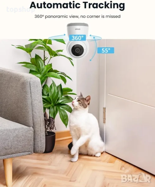 【Автоматично проследяване и предупреждения в реално време и 360° изглед】 Оборудван с интелигентна технология за отчитане на движение, тази камера за кучета открива движение и изпраща незабавни предупреждения до вашия телефон. Просто отворете ПРИЛОЖЕНИЕТО ieGeek Came, за да следите лудориите на вашето куче в реално време, независимо къде се намирате. Освен това, когато включите функцията за автоматично проследяване на движението, тя автоматично ще проследява всичко в стаята с 360° хоризонтален и 55° вертикален изглед.