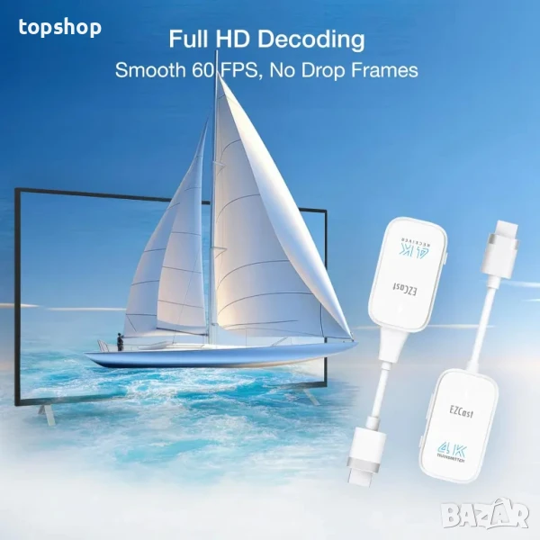EZCast безжичен HDMI предавател и приемник 4K, Plug & Play, поточно предаване на всякакви устройства