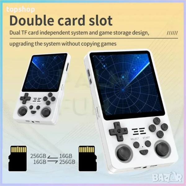 【RGB20SX 128GB Ръчна игрова конзола с 20000 игри】Нова ъпгрейд на 2024 г. Ръчна игрова конзола RG35XXSP. Предварително инсталирана 16+128G TF карта, 20000+ класически игри, поддръжка на повече от 30+ платформи. Linux системата може да добавя емулатори и игри със съответен формат.