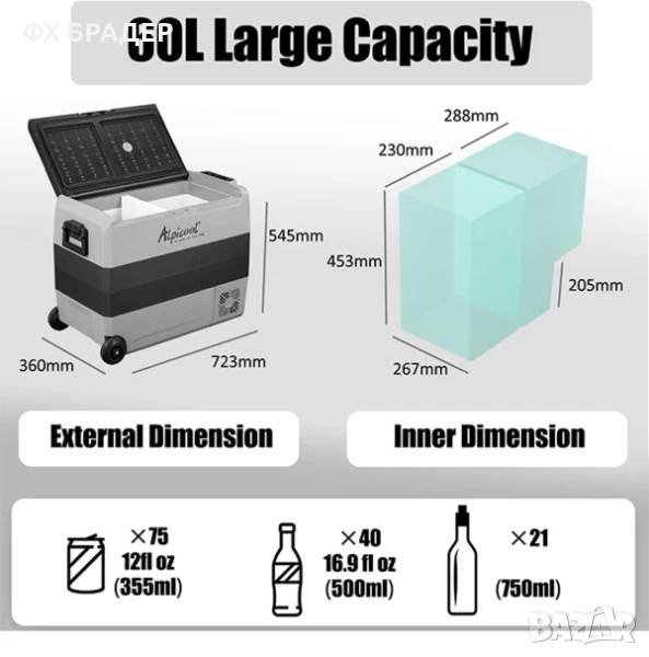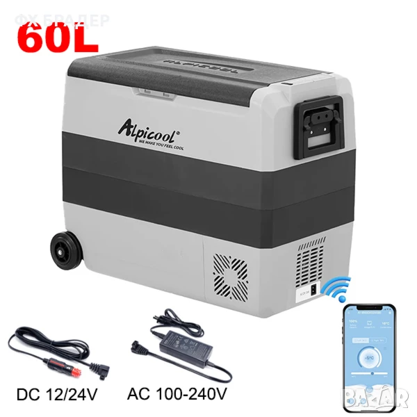Alpicool Компресорен Хладилник за кола с фризер 12/24/220V, блутут функция