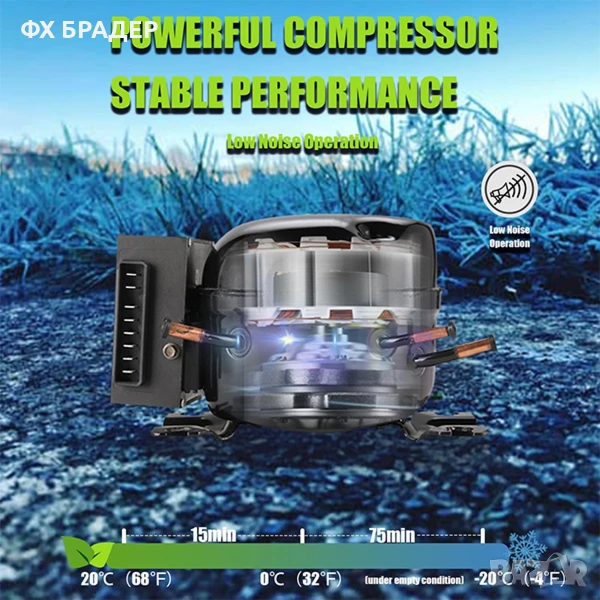 Бързо охлаждане с авангардна технология: Ефективно охлаждане само за 15 минути до 0°C. След изключване изолационните материали поддържат хладилника охладен за няколко часа.