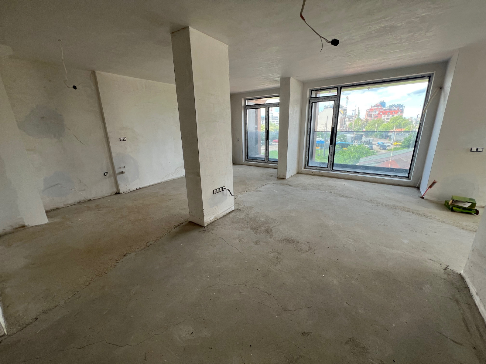 Тристаен апартамент в новострояща се сграда до спирка на градски транспорт и Южен парк. Подходящ за преустройство в четиристаен. Застроената площ от 129кв.м. е разпределена между входно антре, просторна дневна с кухненски бокс, три спални, голям балкон на северозапад и втори малък на североизток. Изложение северозапад- североизток. Сградата е пред въвеждане в екплоатация. Вентилируема фасада, дограма Aluplast, асансьор Kone. Опция за закупуване на подземен гараж. За огледи 0988870990