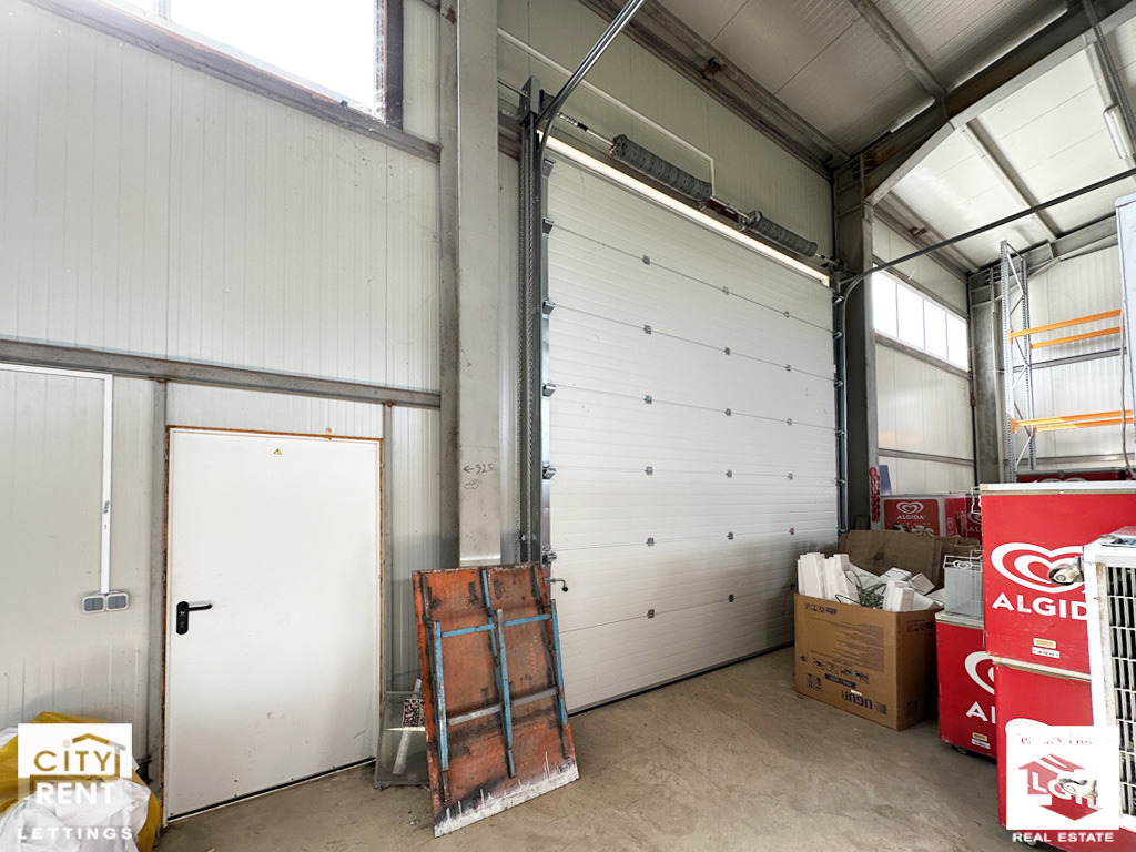 Сградата е изградена с термопанели, което осигурява отлична топлоизолация. Разполага с PVC дограма, стабилна бетонна подова настилка, електрозахранване, водоснабдяване и канализация. Имотът е подходящ както за складова и търговска, така и за производствена дейност.