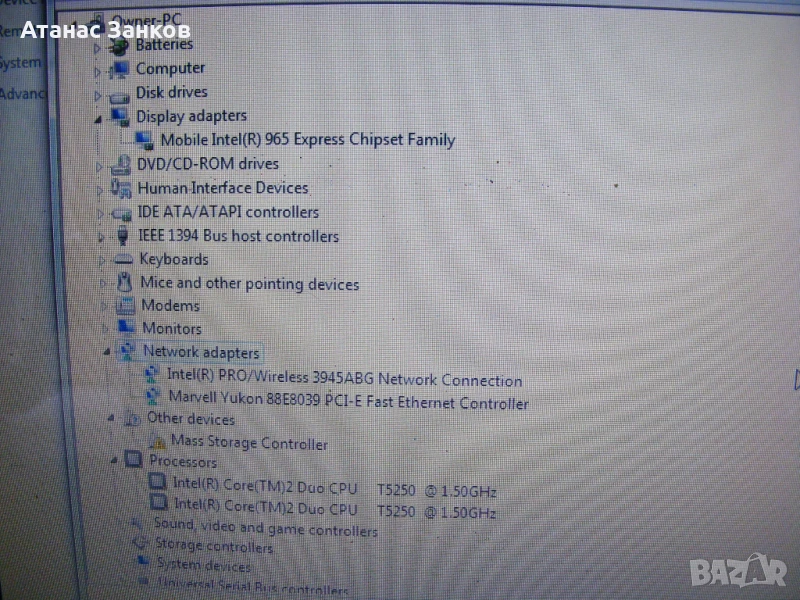 Процесора е интел Intel Core2 Duo T5250 @ 1.50GHz