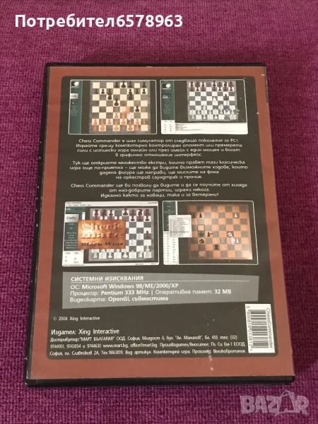 Продавам PC компютърна игра Шах симулатор с упътване на български език . Като нова . Работи отлично . Изшращам с Еконт или Спиди .