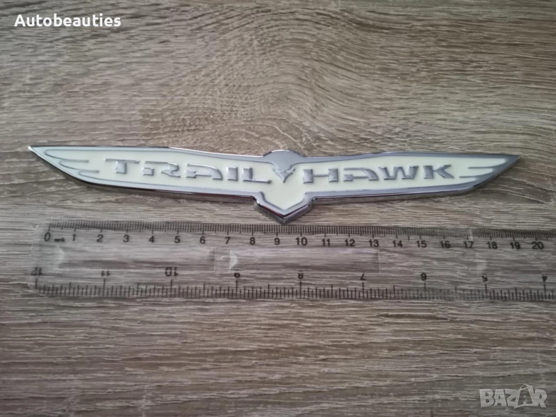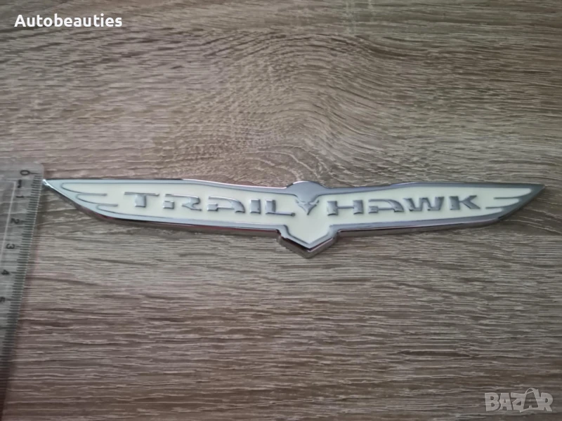 нова метална бяла емблема Trailhawk за Jeep. Размерът е 21 см на 3 см.