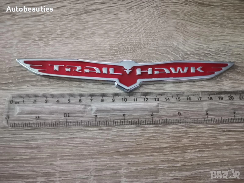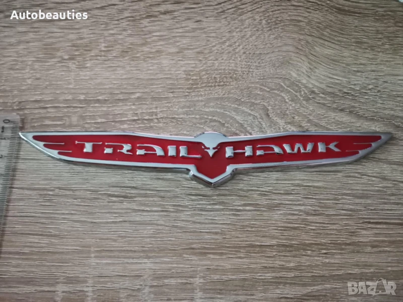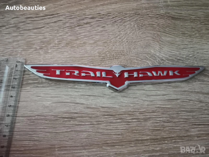 нова метална червена емблема Trailhawk за Jeep. Размерът е 21 см на 3 см.